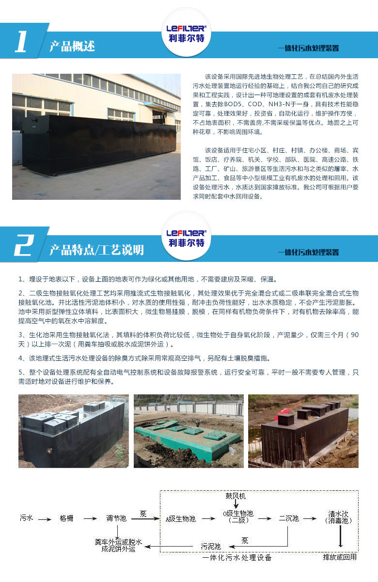 該設備采用國際先進的生物處理工藝,在總結國內外生活污水處理裝置的運行經驗的基礎上,結合我司自己的研究成果和工程實踐,設計出一種可地理設置的成套有機廢水處理裝置,集去除BOD5、COD、NH3-N于一身