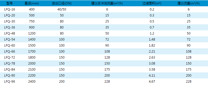 反洗耗水量: < 過濾量的1% 反洗方式:內源反洗