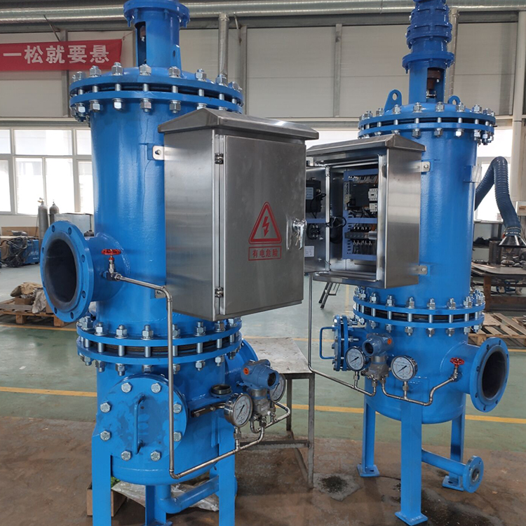 自清洗過濾器由罐體、過濾柱、反沖洗機構、電控箱、減速機、電動或者電氣控制部分閥門和差壓控制器等部分組成。罐體內的橫隔板將其內腔分為濁液腔和清液腔,橫隔板上安裝多個過濾柱。水泵送來的濁液經入口進入濁液腔,又經隔板孔進入過濾柱的內腔。大于過濾柱縫隙的雜質被截留,清液穿過縫隙到達清液腔。所有過濾柱濾過的液體在清液腔內匯合,后從出口送出。自清洗過濾器的廣泛地應用領域于冶金、化工、電力、機械、煤炭、造紙制漿、城市給水等行業連續用水的場合,可以有效地去除工業循環水中水中機械雜質。廢水,循環水的過濾,乳化液的再生,管道過濾器廢油過濾處理,冶金行業的煉鐵、煉鋼、軋鋼、連鑄水、高爐水、動力系統等。功能可去除水中泥沙、粘土、鐵銹、懸浮物、藻類、生物粘泥、腐蝕產物、大分子細菌、有機物及其它微小顆粒等雜質,達到水質凈化的目的。